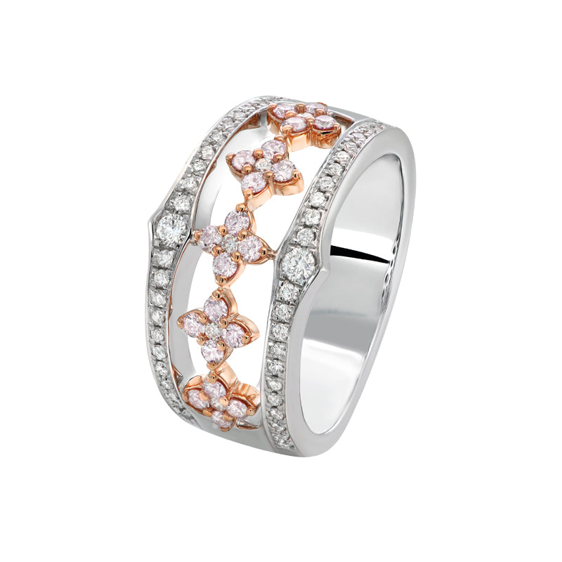 18ct White and Rose Gold, Pink and White Diamond Ring. Design No: PKD-RDNFB0110
