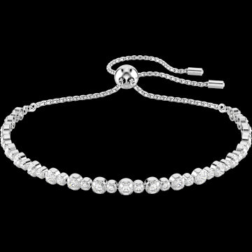 Infused with subtle elegance and timeless charm, this delicate cupchain bracelet would make an ideal gift for yourself or someone you love. The design combines clear Swarovski Zirconia and rhodium plating, finished with an adjustable sliding closure to fit any wrist size. The perfect partner for everyday outfits, it stacks easily with other bracelets for an all-over look of luxury.