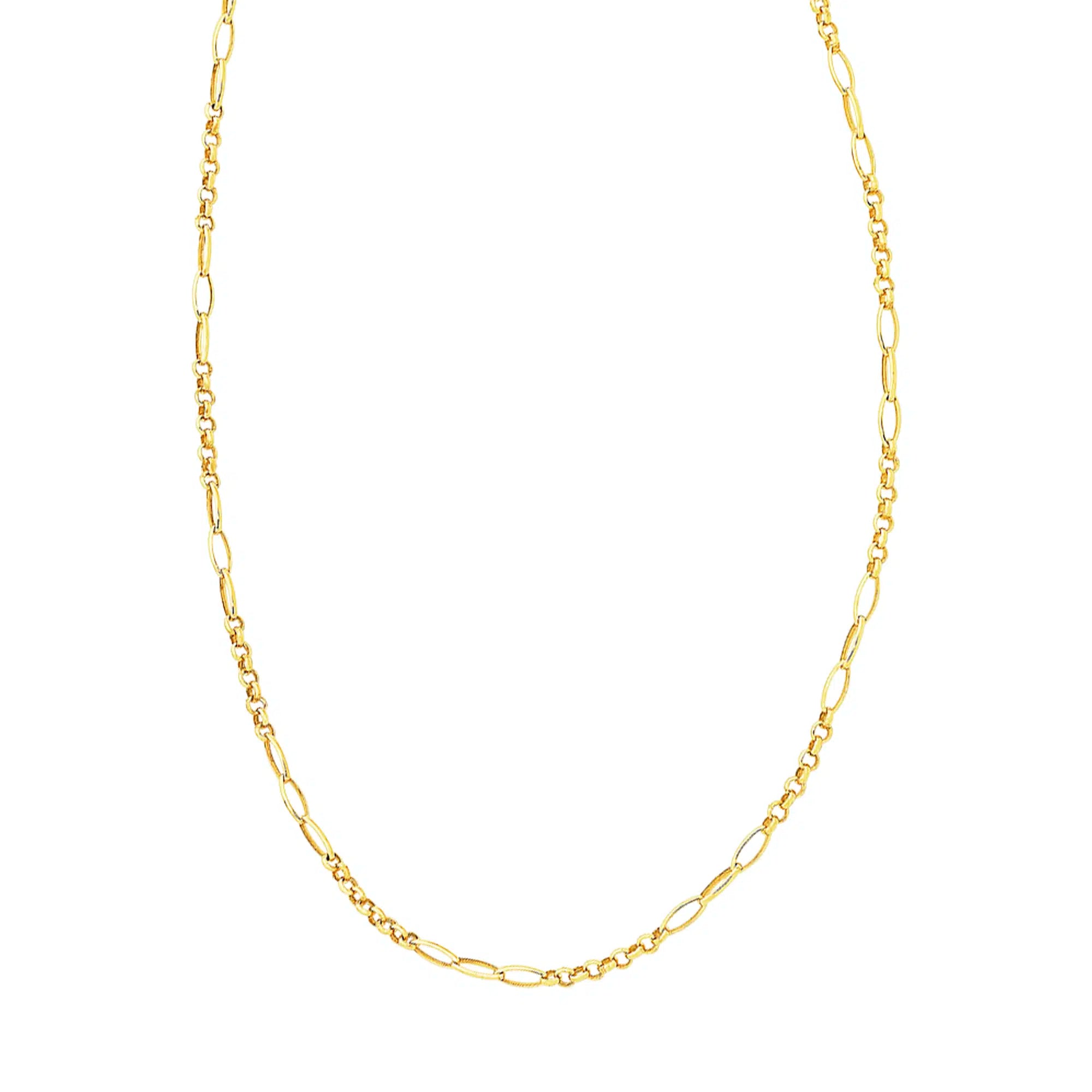 A timeless fusion of strength and elegance, this 50cm curb chain showcases a distinctive 3+10 link pattern—three compact links followed by ten elongated ones—creating a rhythmic interplay of texture and light. Crafted in radiant 9ct yellow gold and silver-filled for enhanced durability and contrast, the chain offers a refined silhouette with a subtle vintage nod. Its alternating link design ensures fluid drape and visual intrigue, making it ideal for solo wear or pairing with a cherished pendant. A versatile piece that balances classic appeal with artisanal detail.