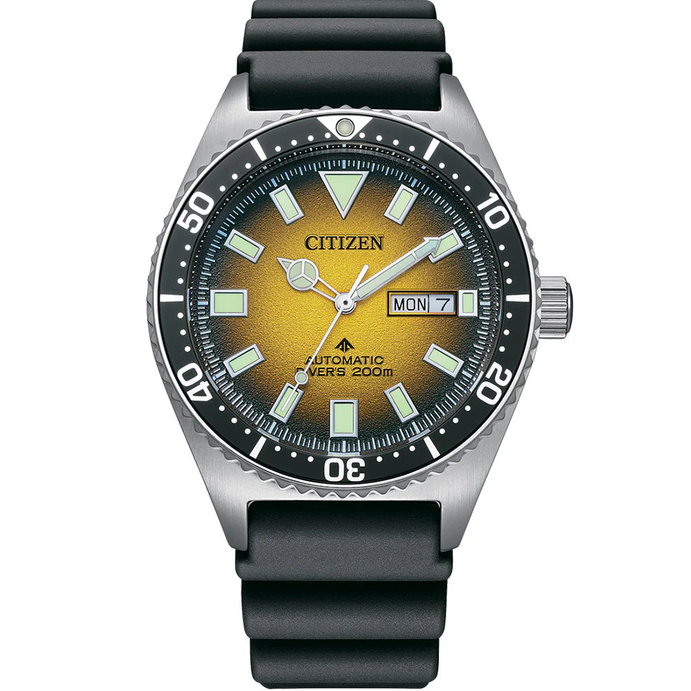 Meticulously designed to excel in endurance and functionality, the Citizen Promaster Automatic timepiece showcases a stylish yellow dial and a polyurethane strap. Driven by automatic movement, this watch ensures accurate timekeeping, rendering it ideal for all explorations.