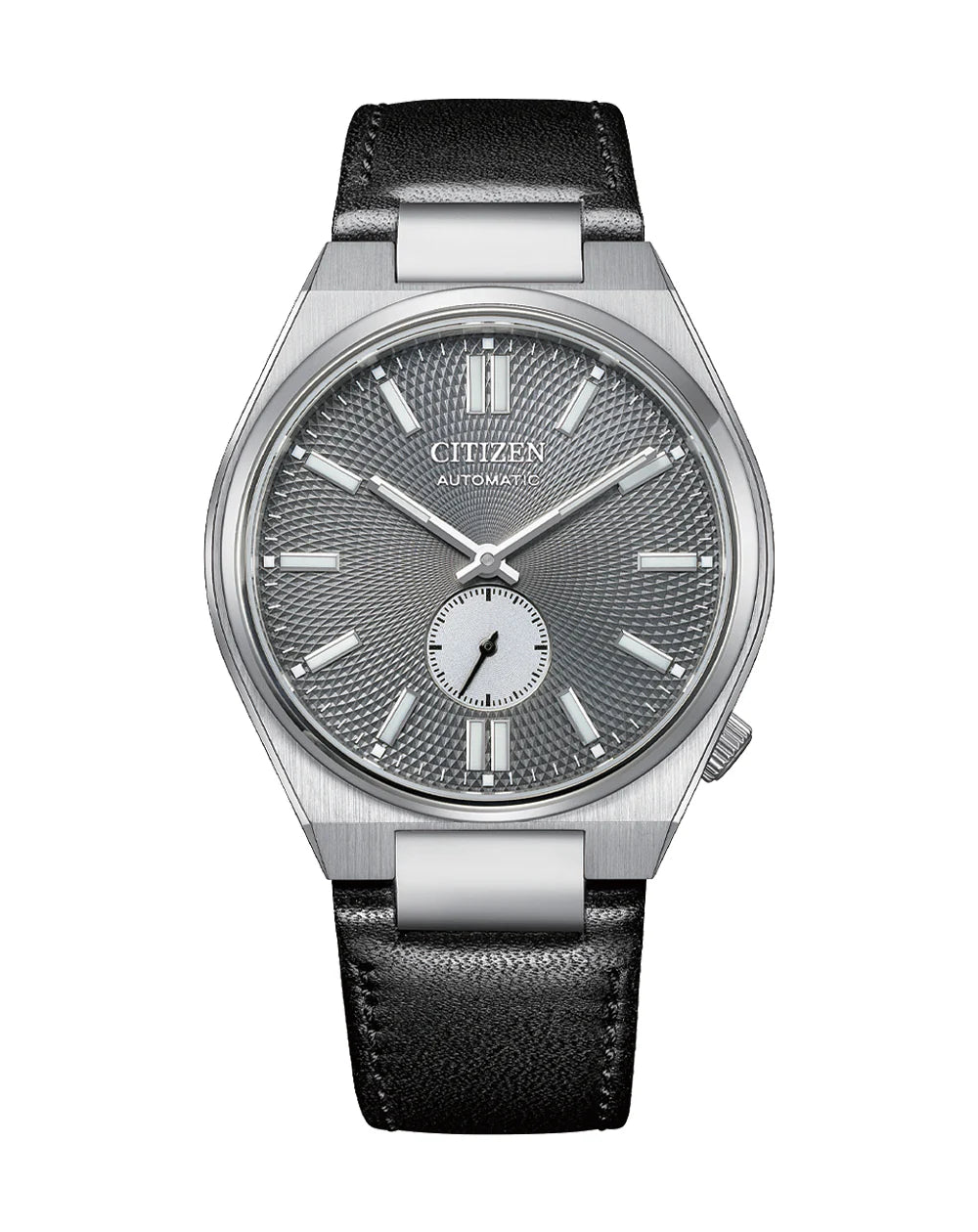 Introducing the "Tsuyosa" Small Second Automatic - a fusion of contemporary style and practical versatility, designed to adorn your wrist with sophistication. With its sleek 40mm size, this timepiece boasts a silver-tone stainless steel case seamlessly integrated with a black leather strap that can be quickly swapped for effortless customization. Adding to its refined profile is the subtly recessed crown positioned at 4 o'clock, contributing to its sleek silhouette. Powered by an automatic movement with an impressive 60-hour power reserve, it ensures reliable performance to accompany you through your busy schedule. Beneath the anti-reflective sapphire crystal, the sporty yet elegant timepiece features a textured grey dial, highlighted by a contrasting seconds counter at 6 o'clock and silver-tone accents, creating an eye-catching aesthetic. With water resistance up to 50 meters, this versatile watch is suitable for all occasions, whether it's work, leisure, or anything in between. The "Tsuyosa" Small Second Automatic embodies timeless elegance and practicality, making a statement wherever you go.