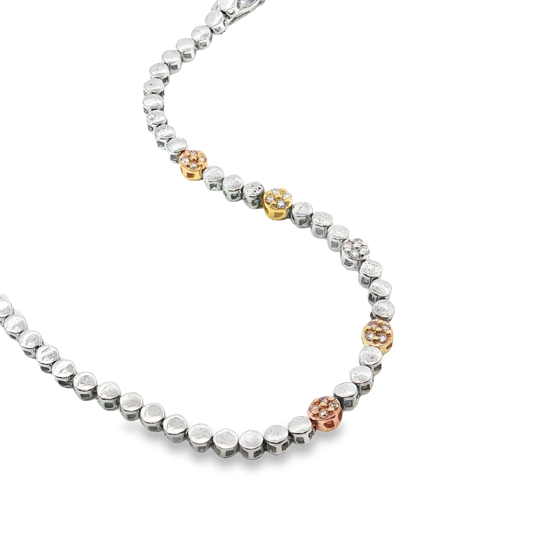 Celebrate the warmth of the earth and the elegance of heritage with this captivatingDREAMTIME bracelet. Crafted in a harmonious blend of sterling silver and 9ct gold, each bezel is thoughtfully set with natural diamonds totaling 0.25 carats. The three-tone palette—soft silver, rich yellow gold, and warm rose hues—evokes the shifting tones of the Australian landscape, while the shades of brown diamonds add depth and character to every link.
