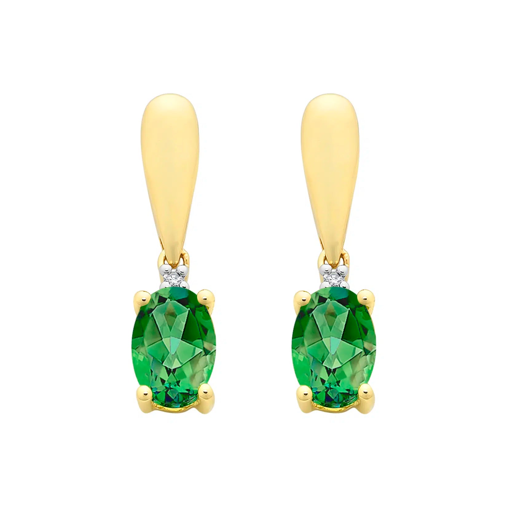 9ct Yellow Gold Created Emerald & Diamond Earrings. Design No: M3198