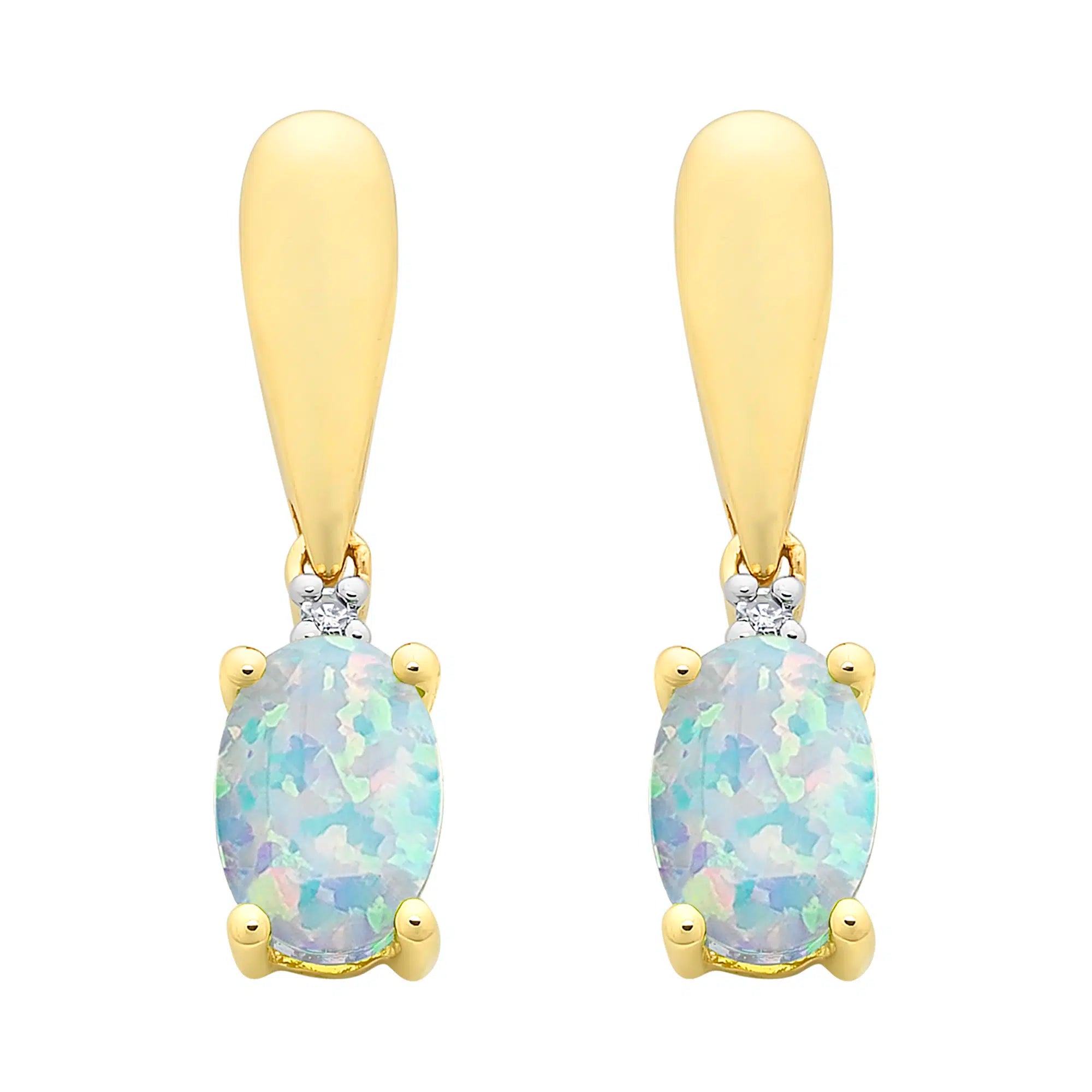 9ct Yellow Gold Lab Grown Opal & Natural Diamond Earrings. Design No: M3204