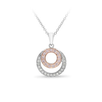 9ct White and Rose Gold Double Circle Passion8 Diamond Pendant. Design No: P843PB-9WRWD-4