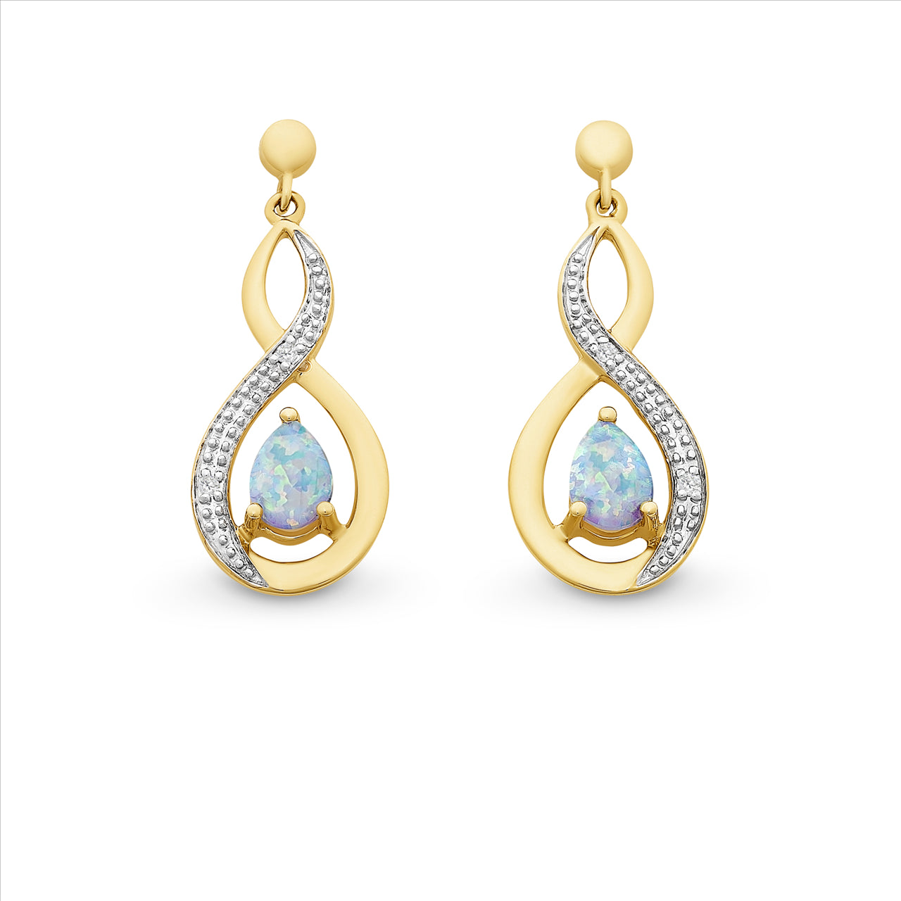 9ct Yellow Gold Opal And Diamond Set Earrings. Design No: M2945.