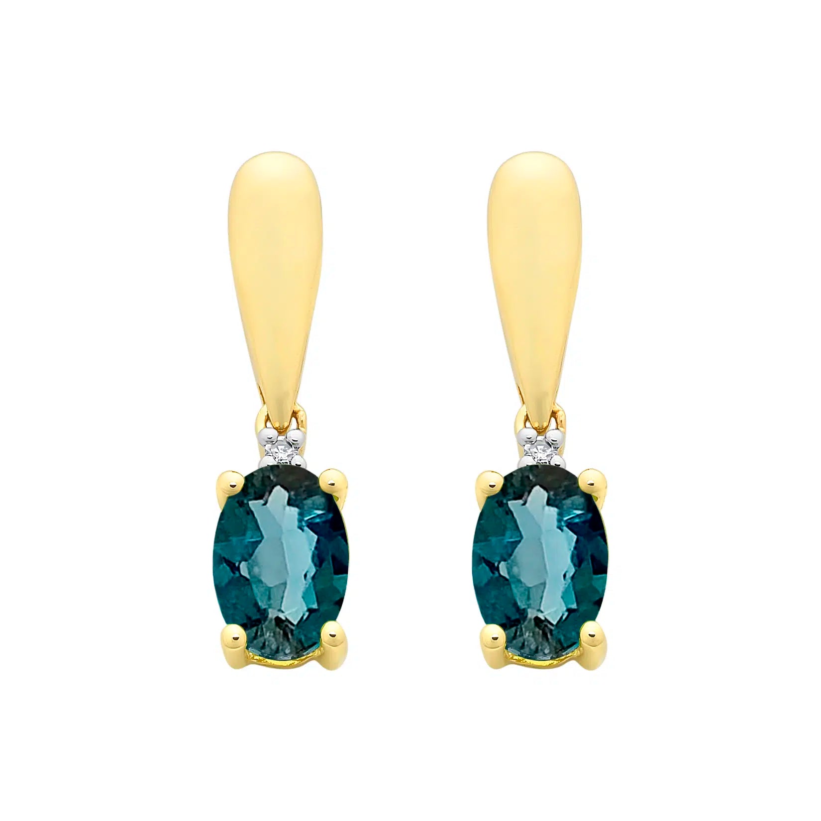 9ct Yellow Gold London Blue Topaz and Diamond Earrings