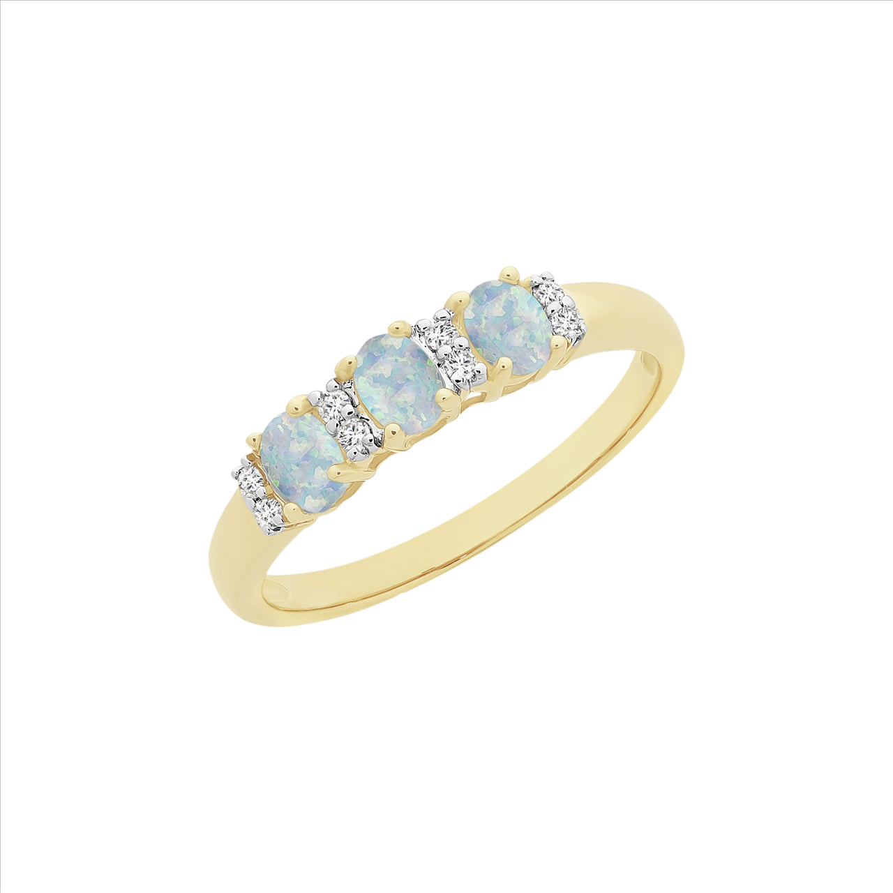 9ct Yellow Gold Created Opal and Diamond Ring. Design No: M3037.