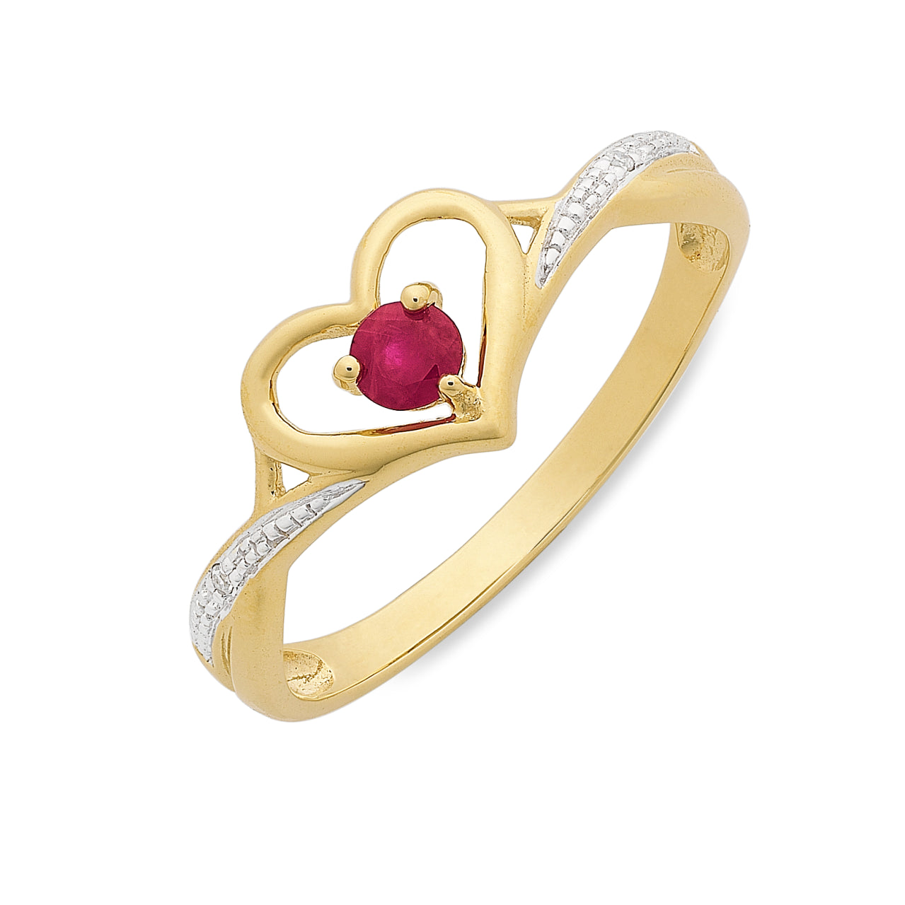 9ct Yellow Gold Natural Ruby & Diamond Heart Ring