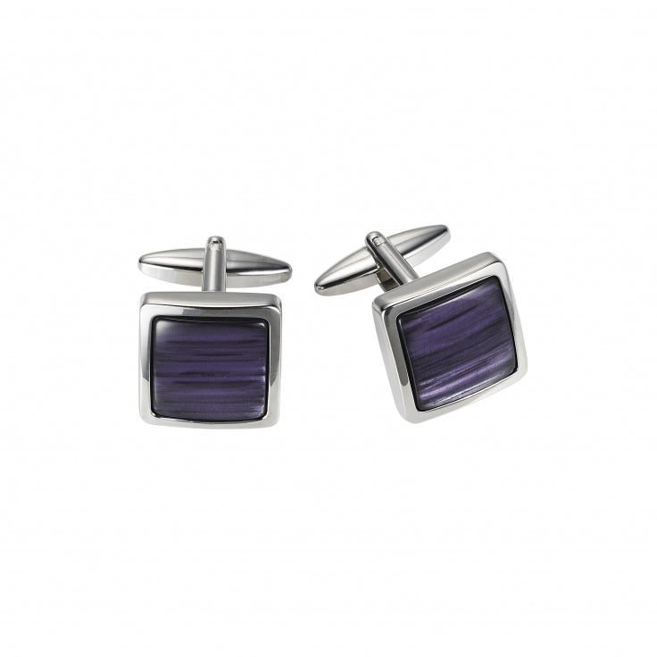 Polished Rhodium Plated Square Cufflinks with Purple Venetian Glass Resin Inlay. Design No: 232-05