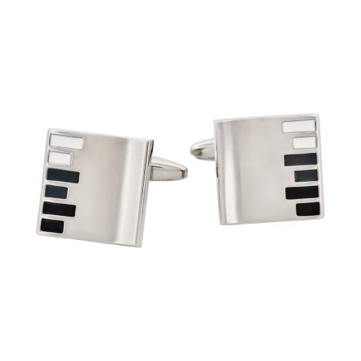 Black White Grey Bar Pattern Rhodium Plated Square Cufflinks. Design No: 214-11