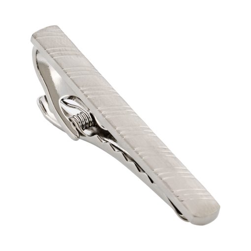 Brushed Rhodium Plated Striped Pattern Tie Bar. Design No: 131-82