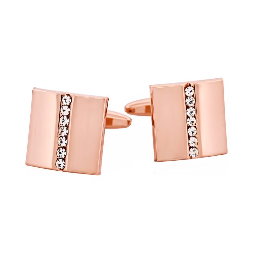 Polished Rose Gold Plated & Crystal Cufflinks. Design No: 240-54