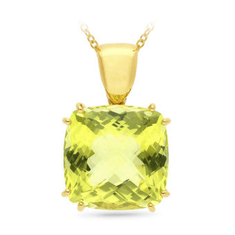 A celebration of light and refinement, this pendant showcases a luminous 15.0mm cushion-cut lemon quartz—an impressive 11.80 carats of golden clarity. Cradled in warm 9ct yellow gold, the setting enhances the stone’s sunlit hue, evoking feelings of joy, vitality, and timeless sophistication. The cushion cut, with its softened edges and brilliant facets, offers a harmonious blend of classic charm and contemporary allure.