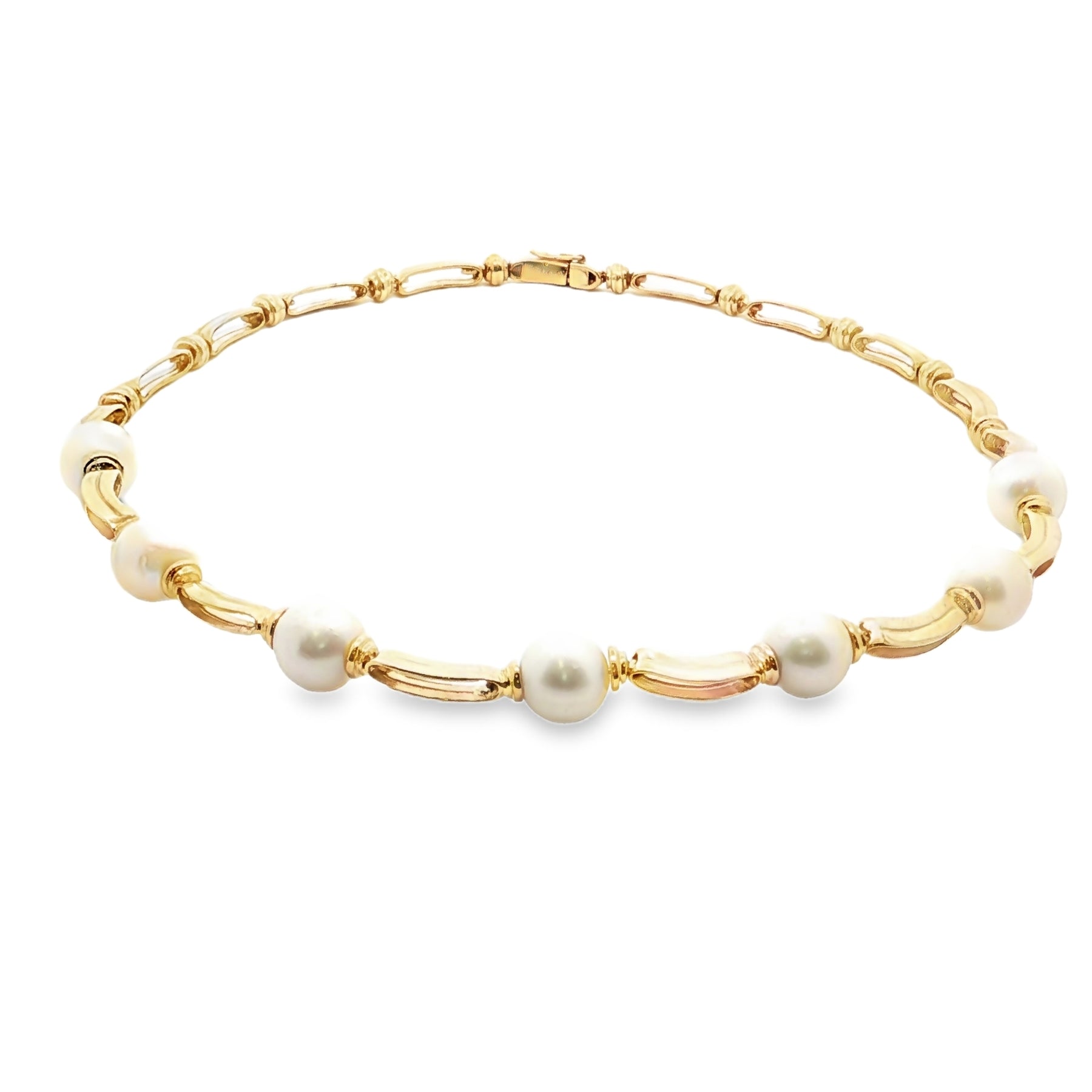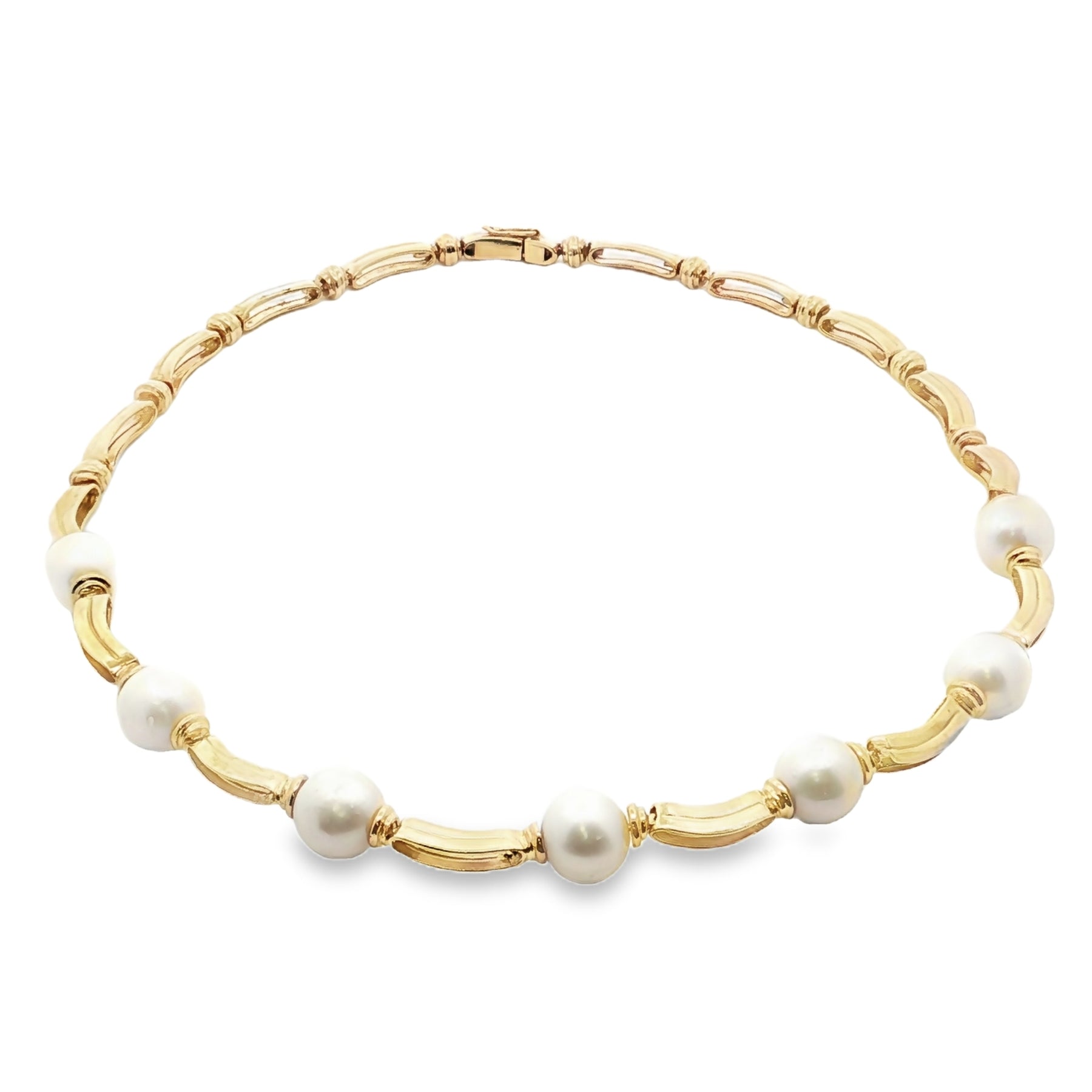 9ct Yellow Gold Gate Link Necklet with 7 Cultured Pearls