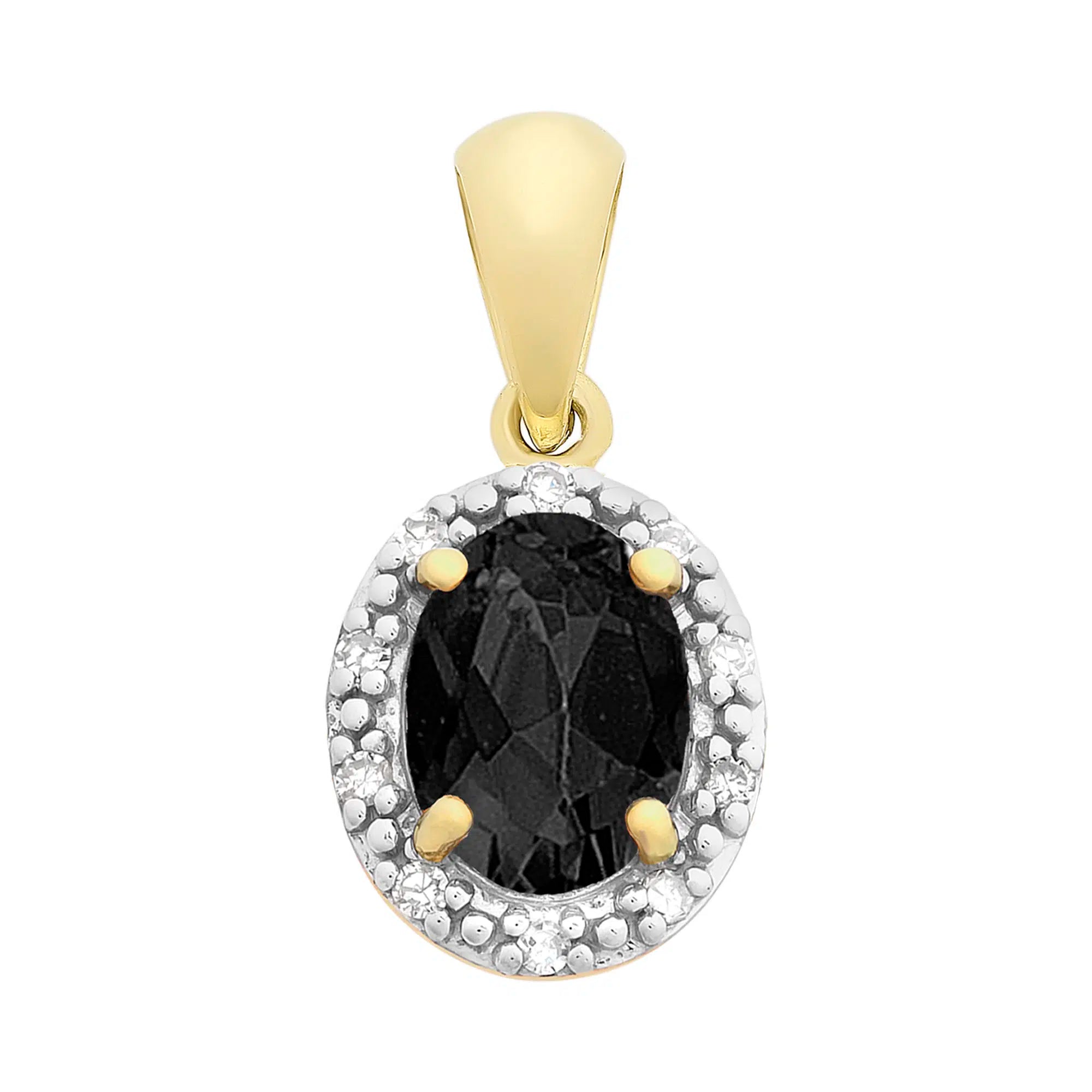 9ct Yellow Gold Natural Oval Sapphire & Diamond Halo Pendant