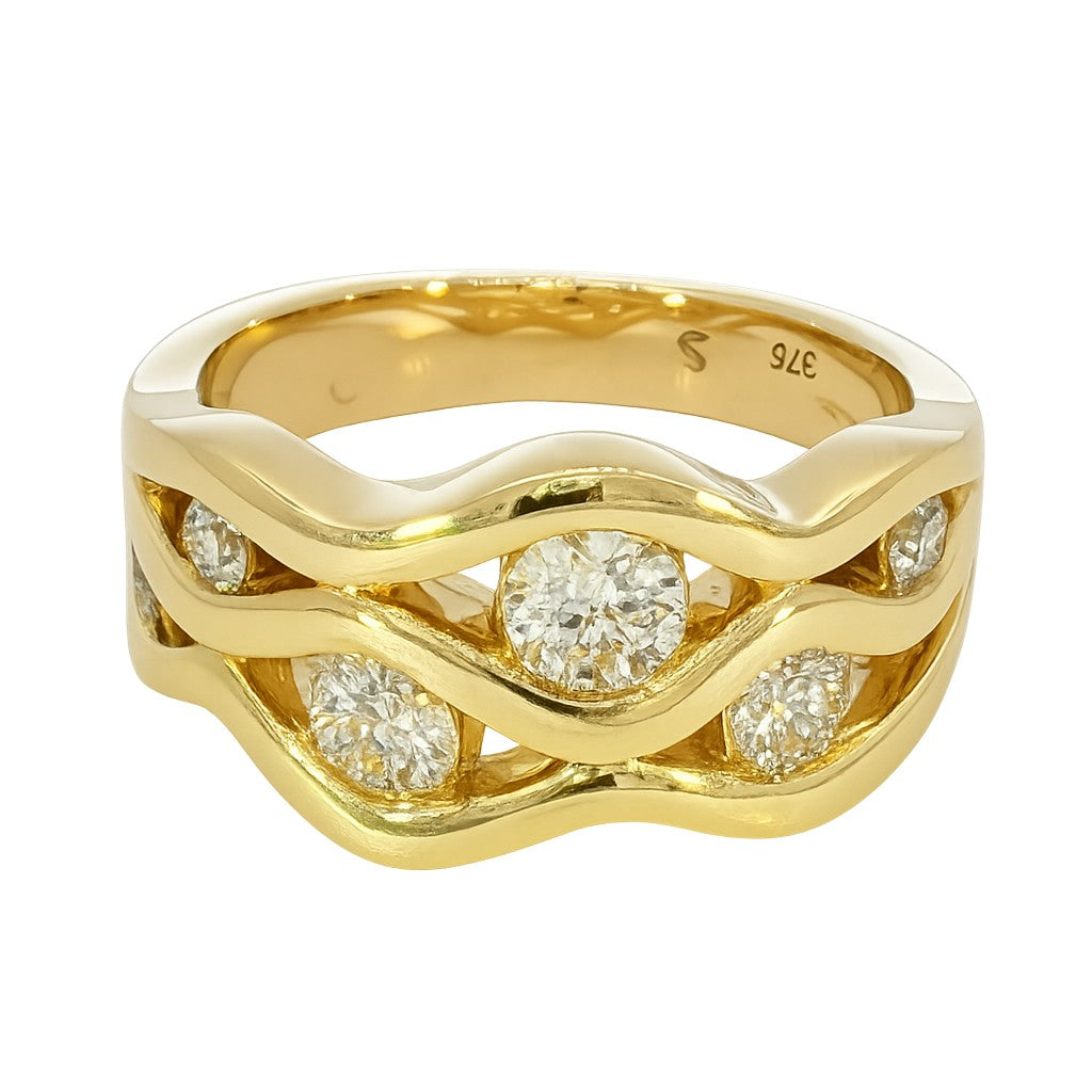 Flowing Waves Gold Diamond Ring. Design No: 3123