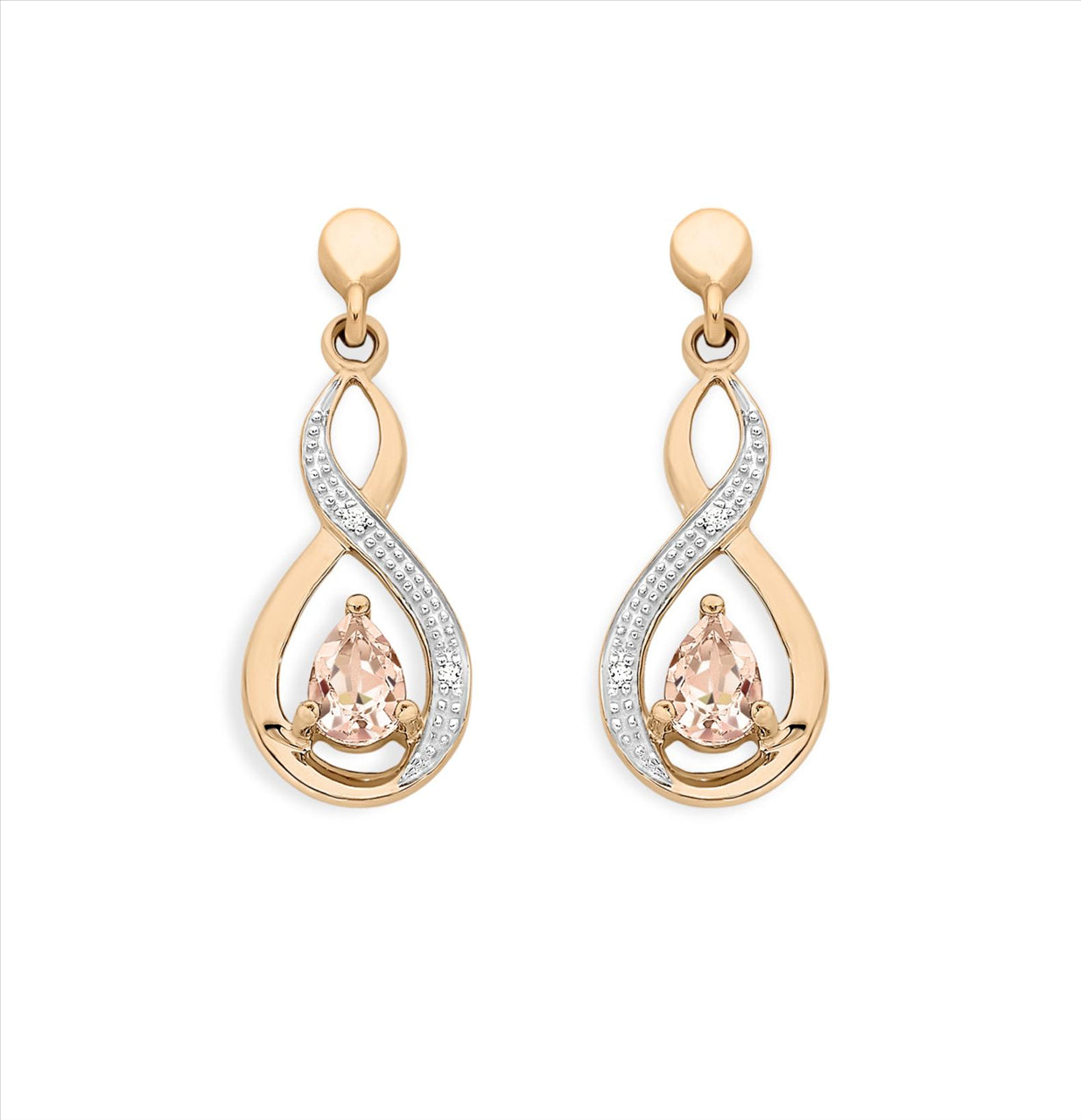9ct Rose Gold Morganite & Diamond Infinity Drop Earrings