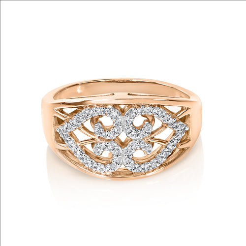 9ct Rose Gold Diamond Double Heart Filigree Ring. TDW = 0.18ct.Design No: SJ5373