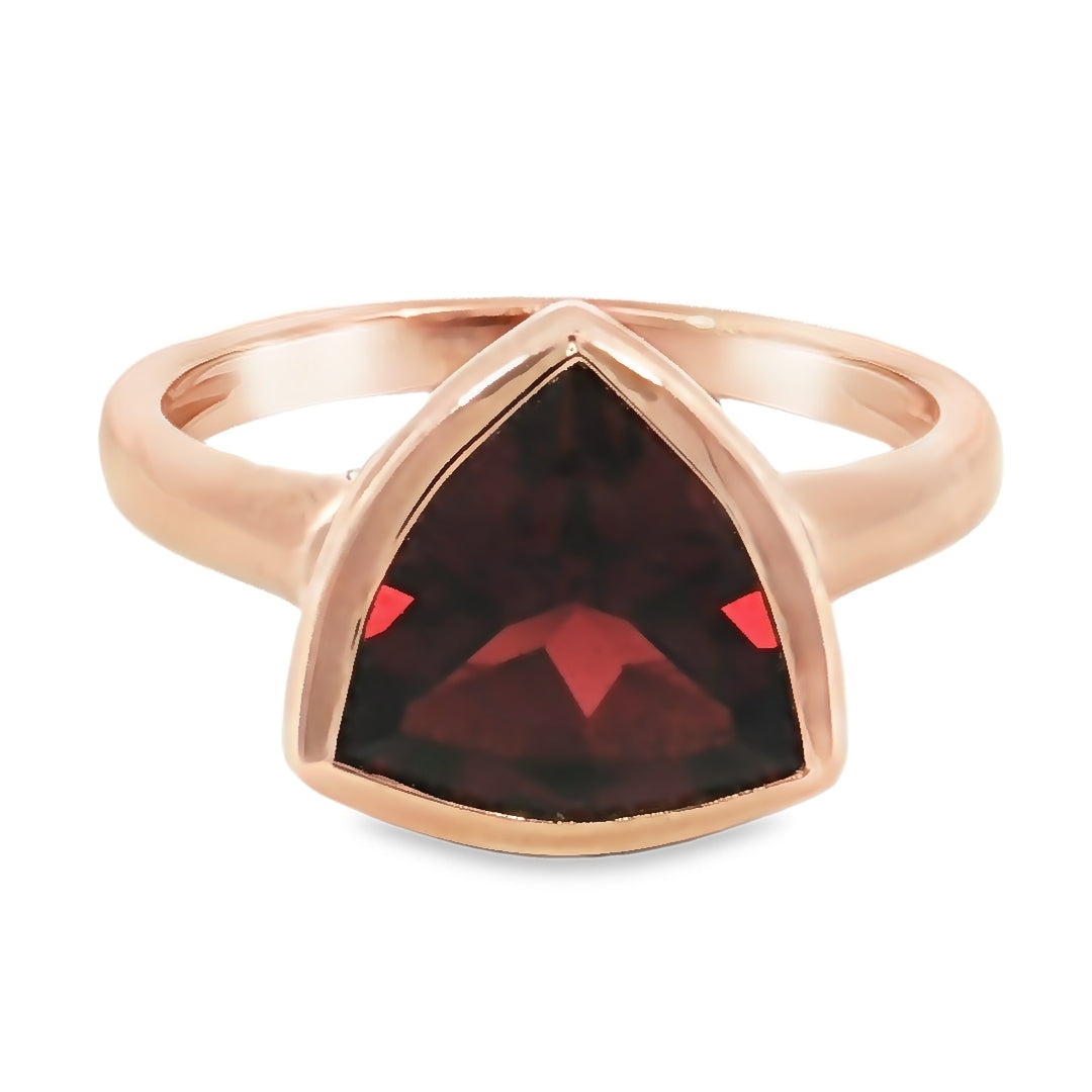 9ct Rose Gold Garnet Ring – Trilliant Cut Bezel Set