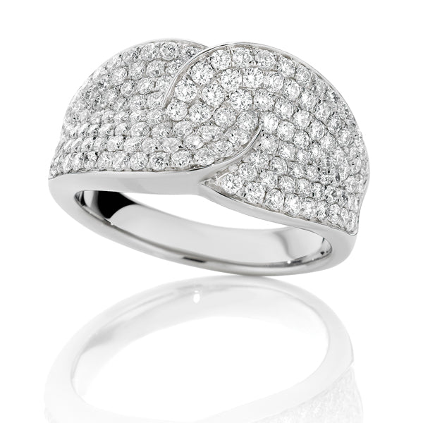 A symphony of sparkle and sophistication, this exquisite dress ring is crafted in luminous 18ct white gold and adorned with 144 meticulously pave-set mined diamonds, totaling 1.50 carats. Each diamond is graded HI in color and SI in clarity, offering a harmonious balance of brilliance and refinement.