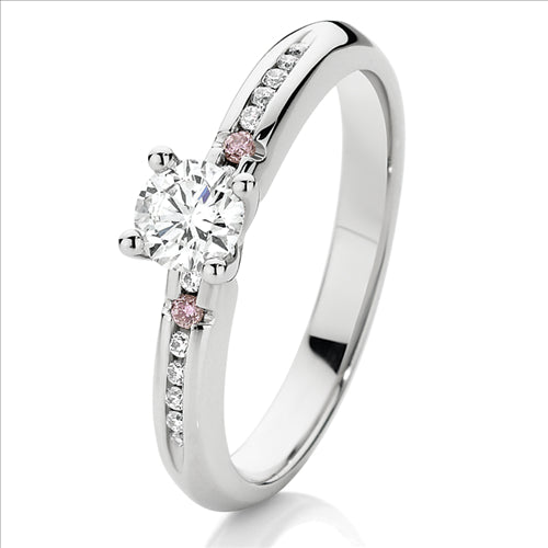 18ct White Gold Engagement Ring with Pink Diamonds.