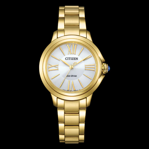 KEY FEATURES This sophisticated women’s watch strikes the perfect balance between style and functionality, ideal for both workdays and evenings out. The brushed gold-tone stainless steel bracelet pairs elegantly with the polished gold-tone case, while the white pearl dial adds a touch of understated luxury. Powered by Eco-Drive technology, it runs on light and never requires a battery. Sapphire crystal provides lasting protection, and its WR50/5 bar water resistance makes it suitable for swimming and snorkeling. A timeless design crafted for every occasion. Collection - Citizen L. Technology - Eco-Drive. Case Material - Stainless Steel. Dial - White. Case Size (MM) - 30. Band - Stainless Steel Bracelet, Push Button Buckle. Water resistance - WR50/5Bar [Still Water Swimming]. Functions - Calibre E031, 3 Hand, 6-month power reserve. 5 Year Limited Warranty. Design No: EM1162-52A.