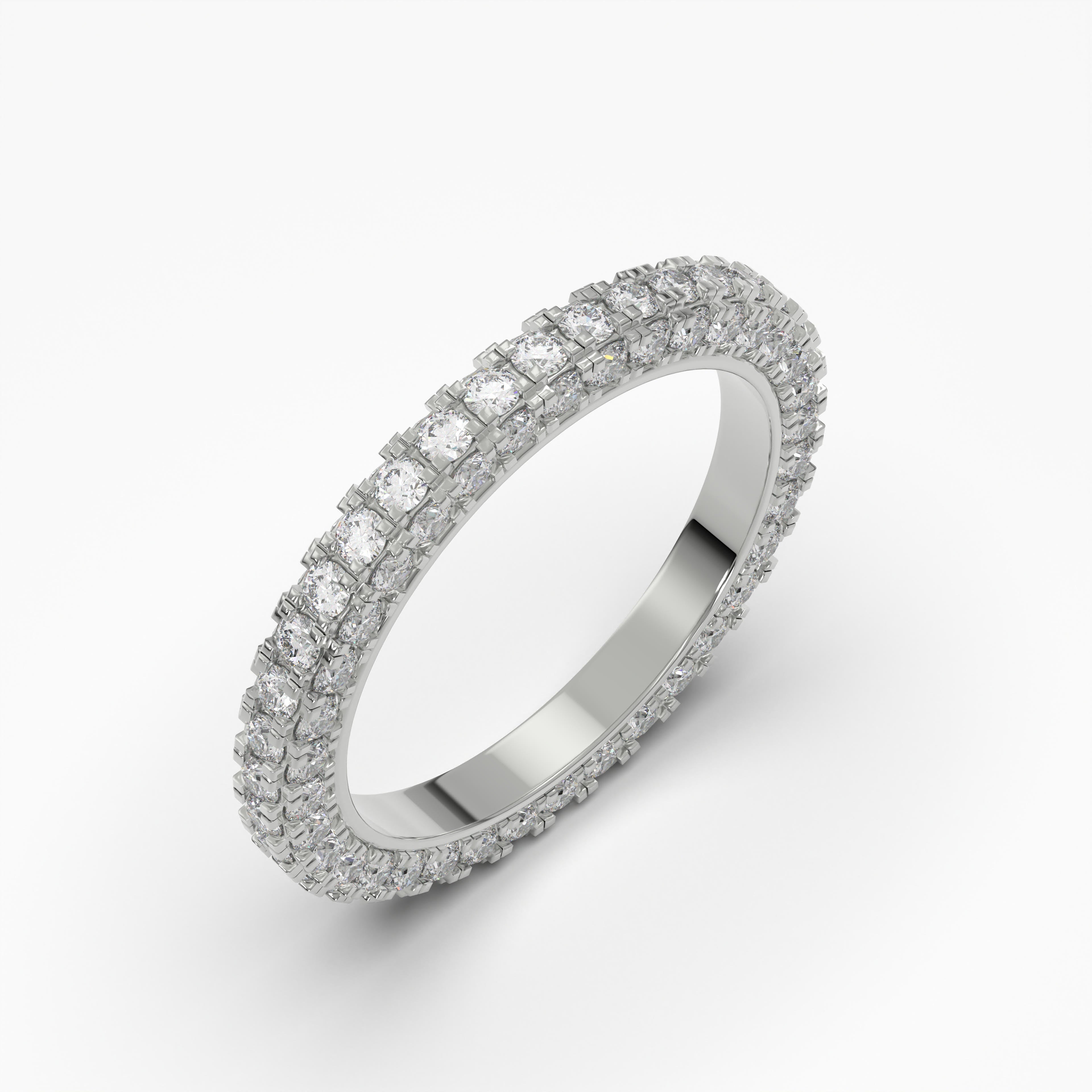 Celebrate enduring elegance with this meticulously crafted platinum eternity ring, claw-set with 104 round brilliant diamonds totaling 1.97 carats. Each stone is hand-selected for its G-H color and SI clarity, offering a harmonious blend of brilliance and subtle warmth. The claw setting enhances light play across the band, creating a continuous shimmer that symbolizes everlasting love.
