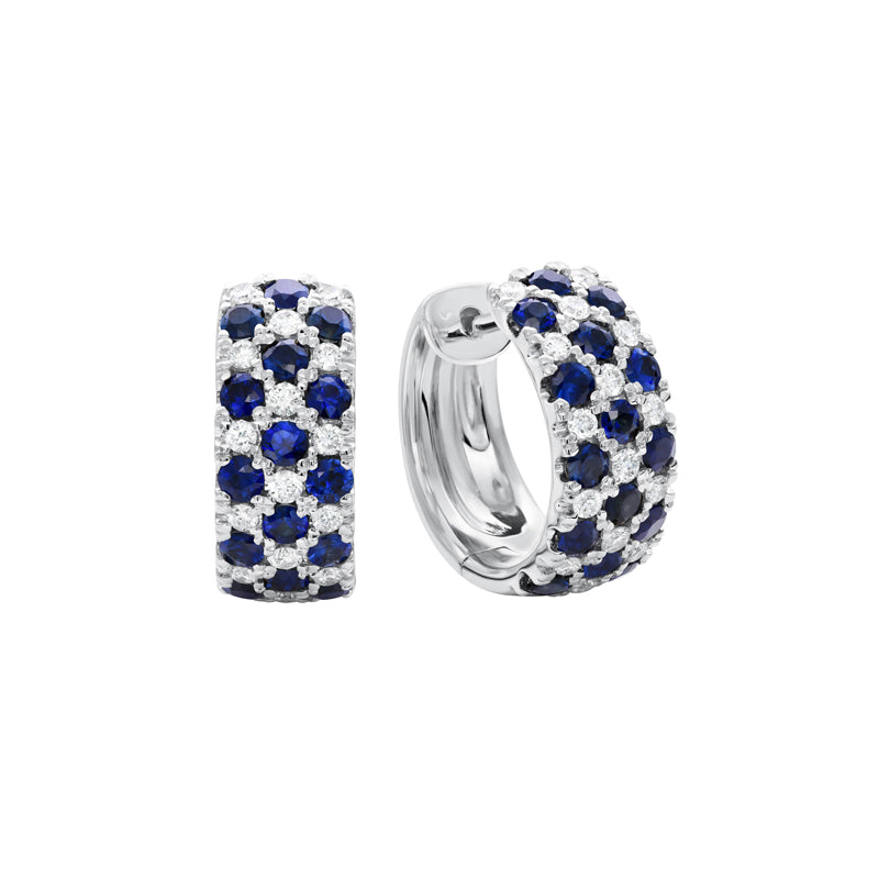 Elevate any outfit for your next event with these gorgeous huggie hoop style earrings. Unique and exquisite, the Clarette Earrings feature round cut Blue Australian Sapphires and sparkling natural White Diamonds, set in durable 18ct White Gold.