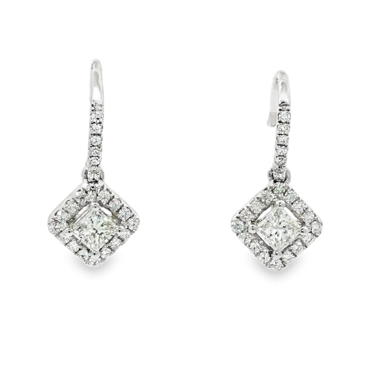18ct White Gold Princess Halo Shepherd Hook Earrings