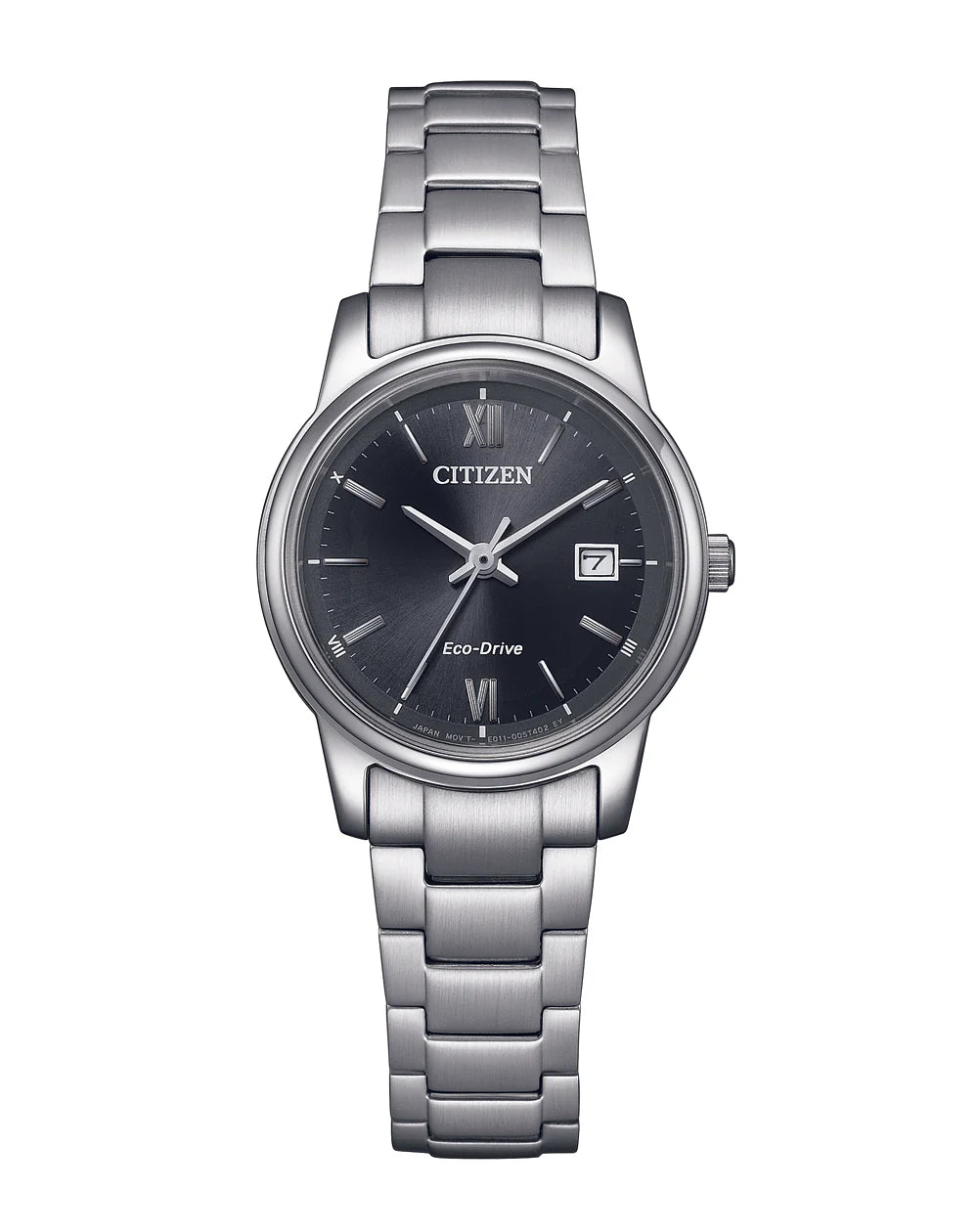 This watch embodies practical efficiency with outstanding reliability. It offers sought-after accuracy, staying precise within 15 seconds each month. Powered by Eco-Drive technology, it eliminates the need for batteries or charging cables. The watch showcases a deep black dial with a date display, clear markings, and a robust stainless steel construction, seamlessly merging form and function.
