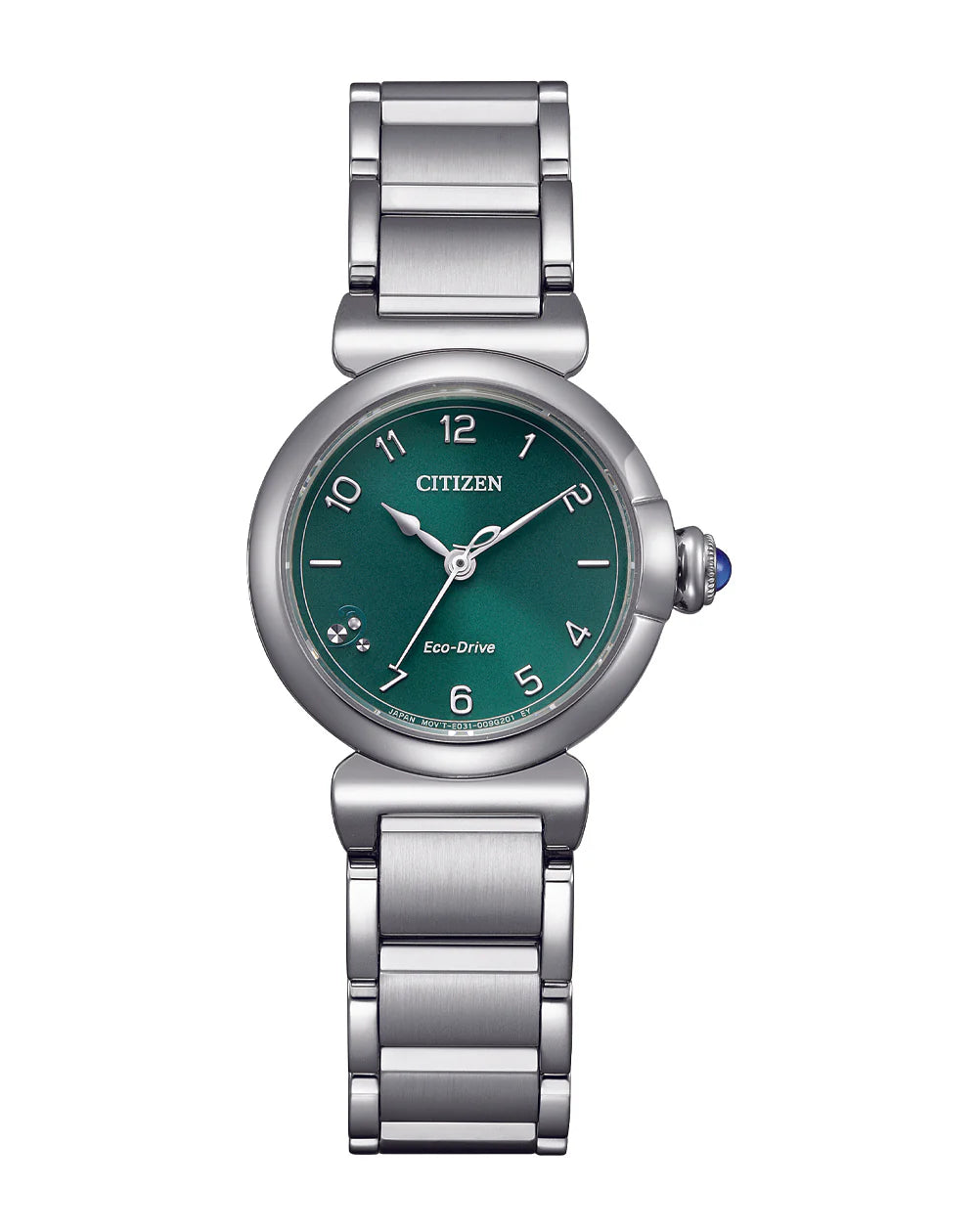 Classic lines and a touch of romance define the newest addition to our ladies' collection: the Citizen L May Bells Mini. Drawing inspiration from the delicate Lily of the Valley, also known as May Bells, this watch exudes glamour and elegance. The design captures the flower’s essence with the gentle, curving lines of its stainless-steel case and a lustrous envy greenl dial. Continuing our commitment to sustainability, the Citizen L collection marries elegant design with a respect for nature. Each watch in this collection is crafted to evoke joy and happiness, a daily reminder of the planet's beauty every time you glance at your wrist.