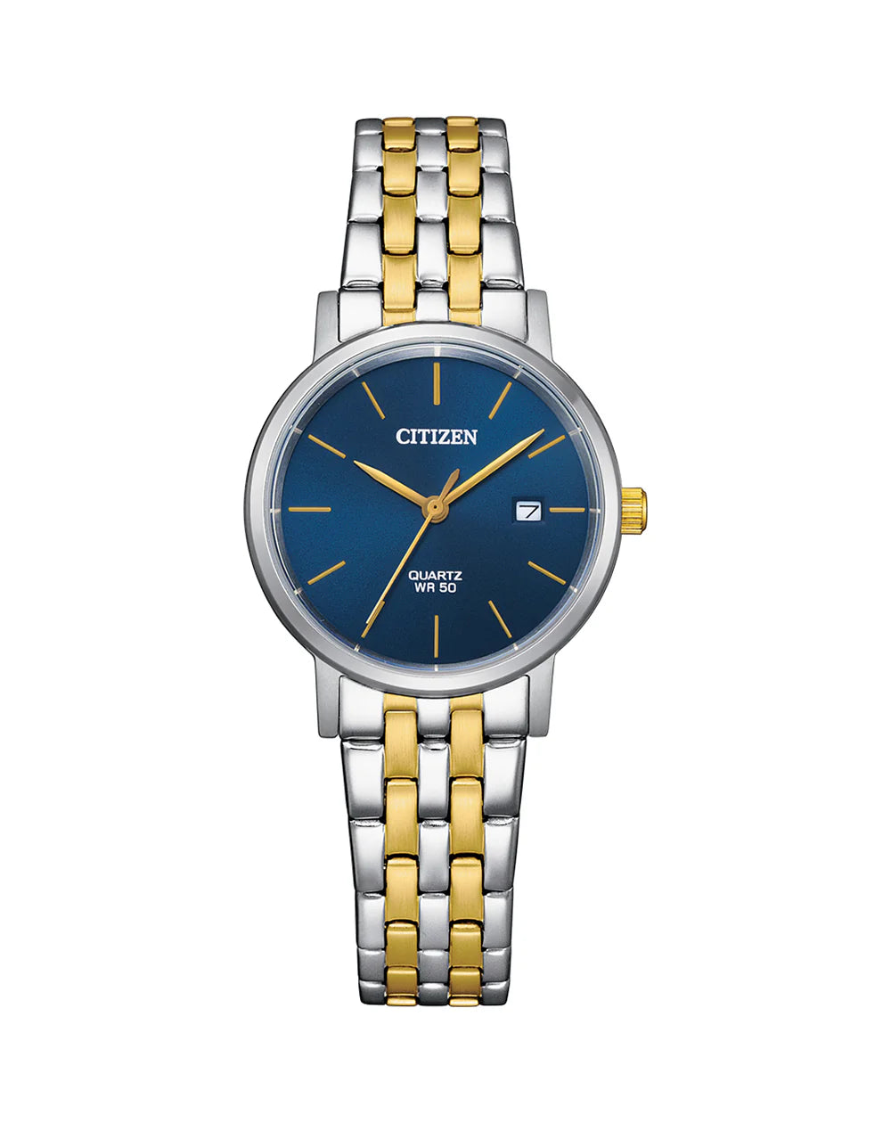 An elegant timepiece with ageless allure, this intricately crafted watch is where precision meets luxury. Styled with a deep blue toned dial and a two-tone stainless steel bezel setting. Powered by a Quartz mechanism with accuracy within 20 seconds each month, this piece presents a lavish everyday option for women who appreciate finer things.