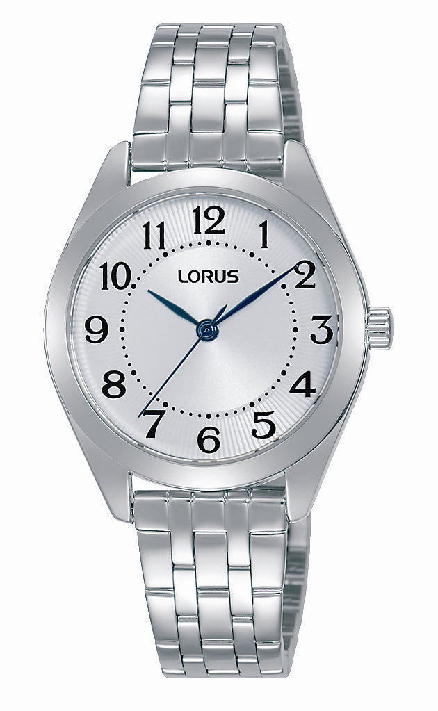 The Lorus RG283UX-9 is a sleek and stylish ladies' dress watch designed for everyday elegance. It features a light white sunray dial with hour, minute, and second hands for precise timekeeping. The case and bracelet are crafted from silver-tone stainless steel, offering both durability and a polished look.