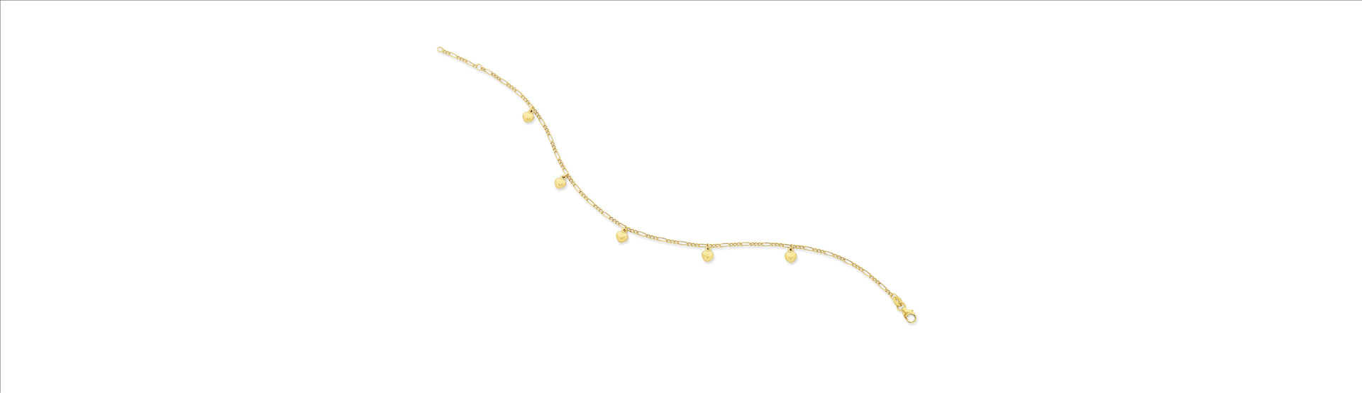 9ct Yellow Gold Silver Filled Curb Link Anklet, with Hearts Charms.