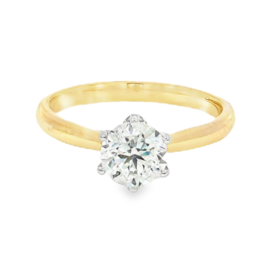 Celebrate enduring love with this exquisite 18ct yellow gold solitaire engagement ring, masterfully crafted to showcase the brilliance of its GIA-certified 1.00ct diamond. Nestled in a classic six-claw setting, the central stone—graded G/SI for its captivating sparkle and clarity—takes center stage, elevated by the sleek elegance of polished yellow gold. Timeless in design and rich in symbolism, this ring is a testament to craftsmanship, commitment, and the beauty of a shared future.