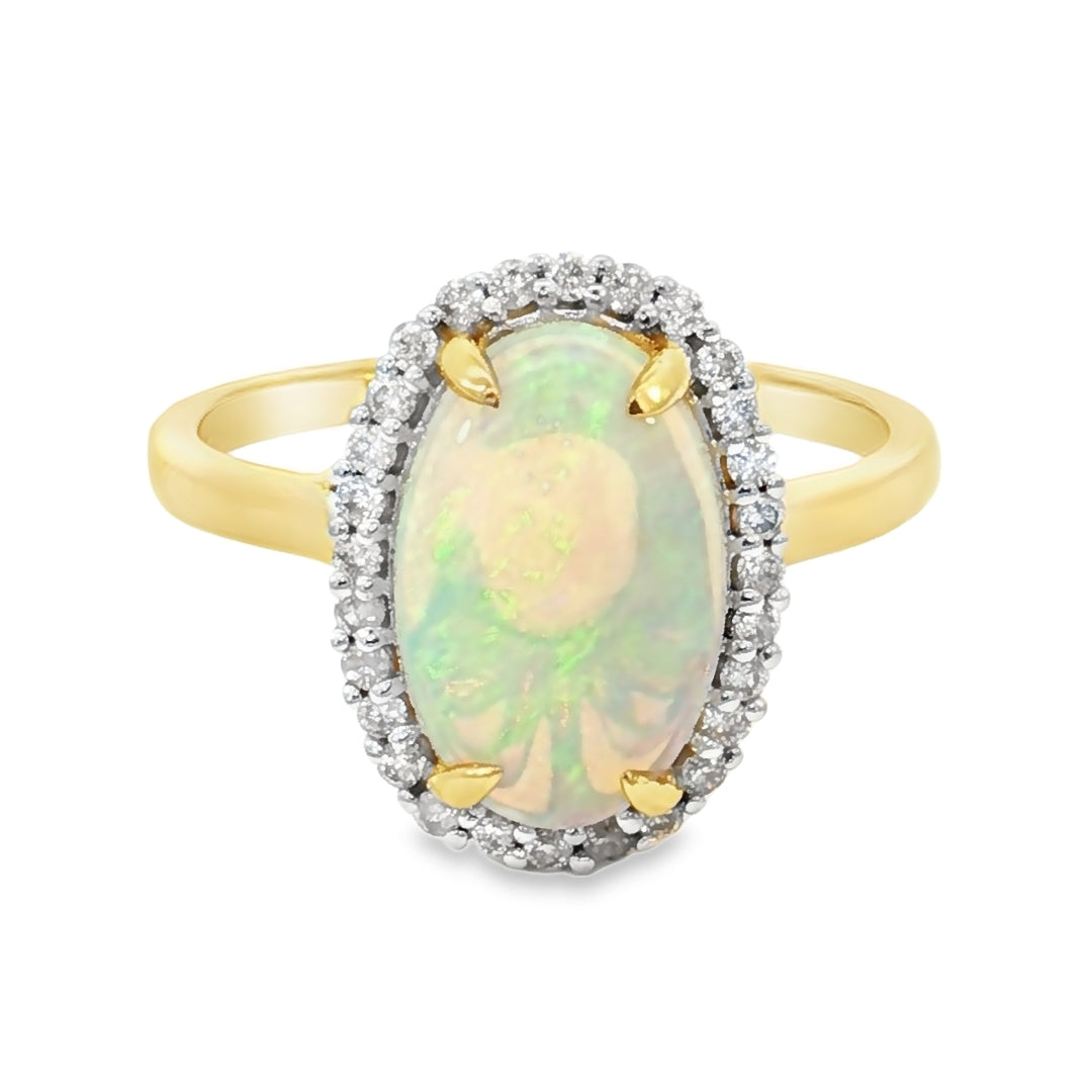 Opal & Diamond Halo Ring in Yellow Gold