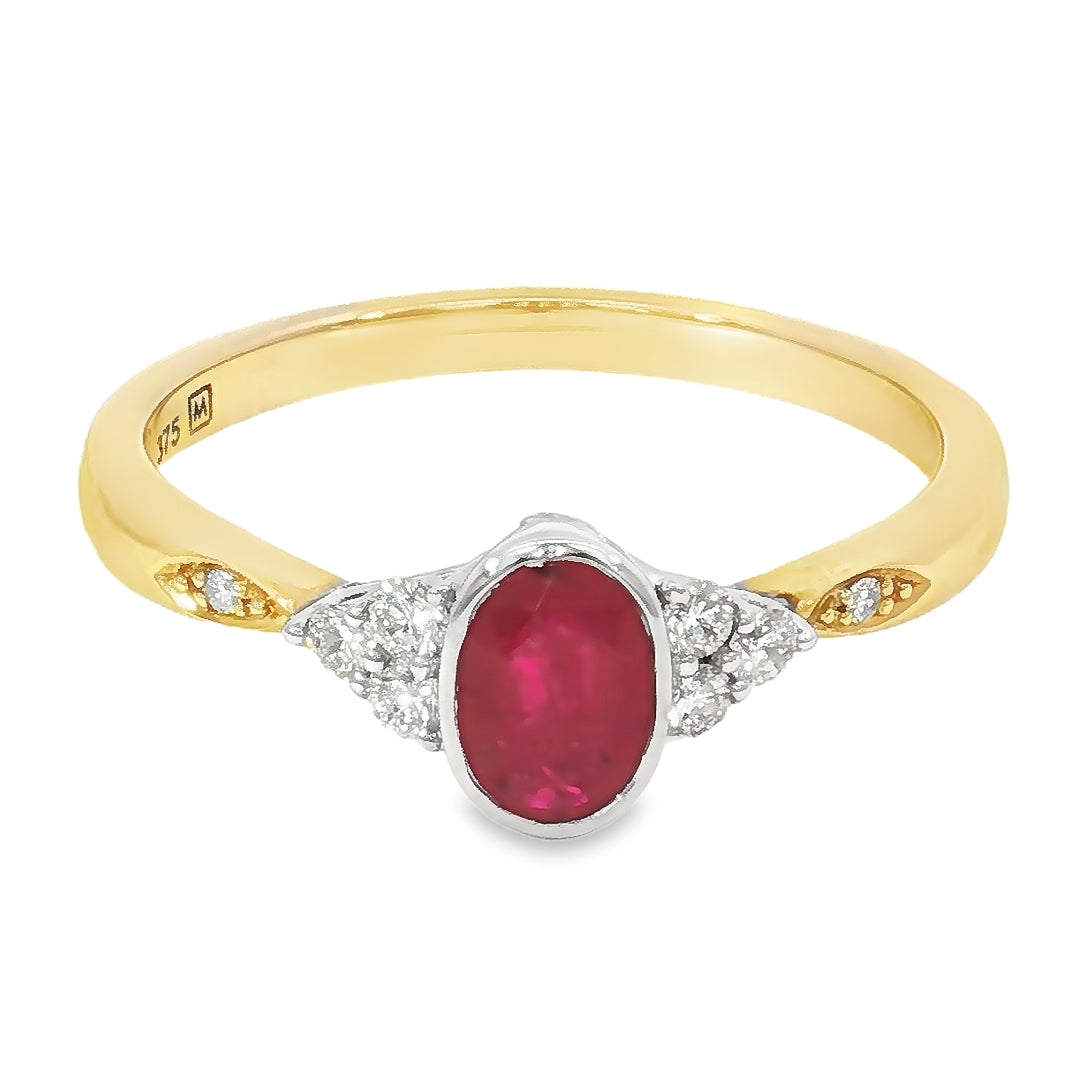 9ct Yellow Gold Ruby & Diamond Ring