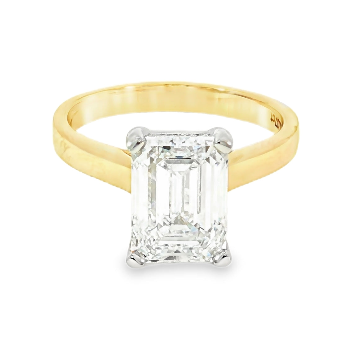 18ct Y/G & Platinum Lab-Grown Emerald Cut Diamond Ring.