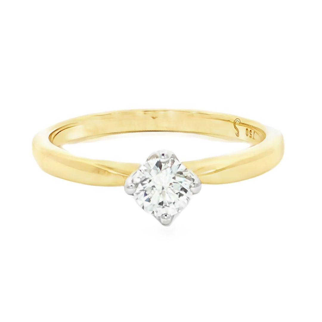 The white gold setting cradles the stone with precision, while the 18ct yellow gold shank adds warmth and classic appeal—an homage to enduring design.